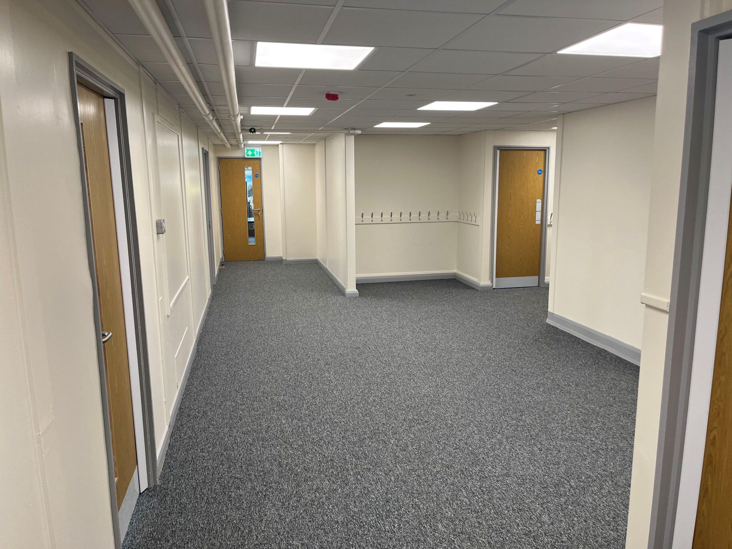 Features of the refurbishment include external recladding, new flat roofing, new ceilings, lighting and emergency lighting, fire doors and fire alarm systems work, electrical safety work, heating, electrical safety work, internal finishes and complete refurbishment of the toilets.