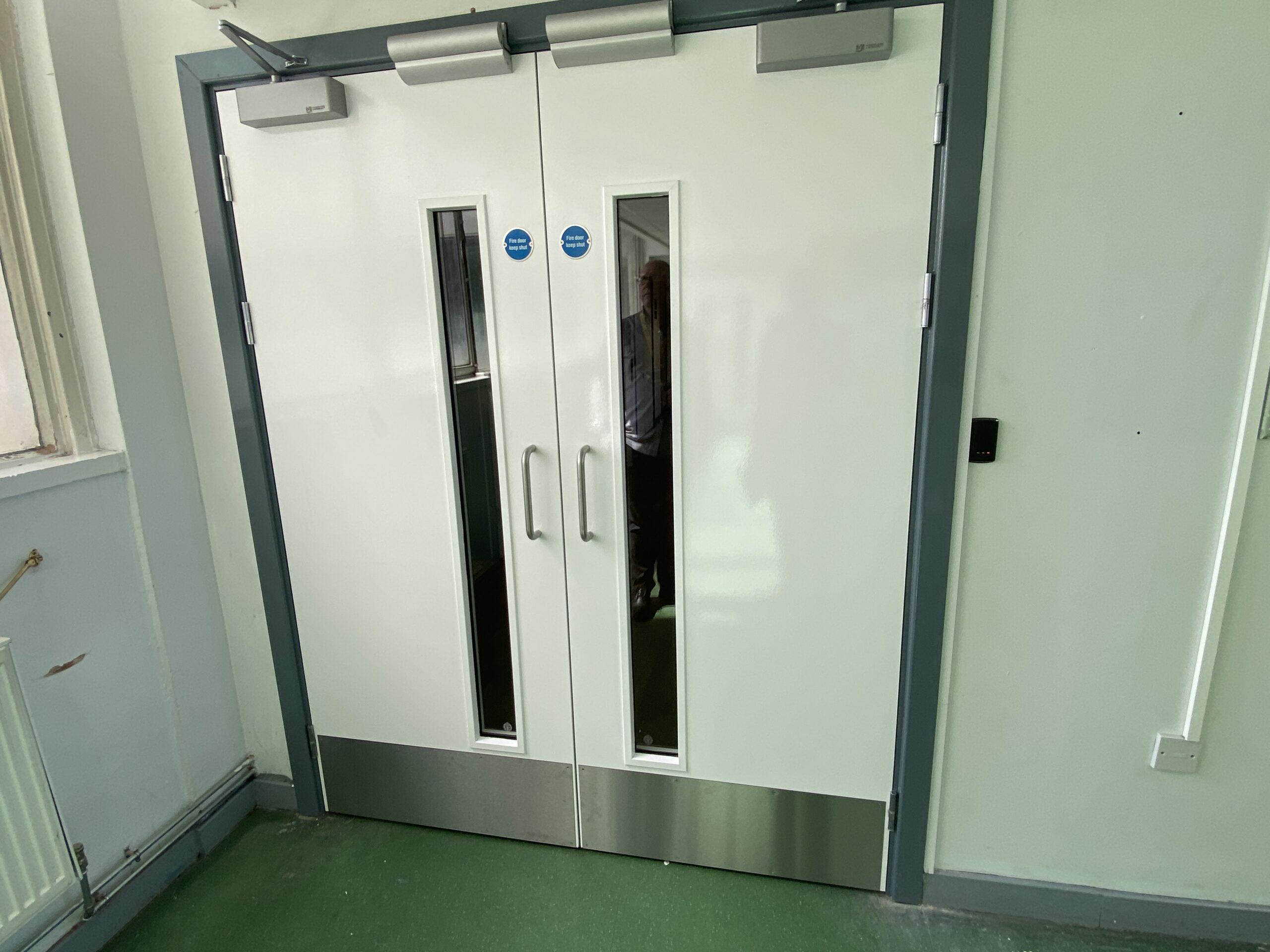 The project aimed to efficiently install new fire-rated doors to meet current safety regulations and enhance occupant safety, all within the tight summer holiday timeframe to minimise disruption to students and staff.